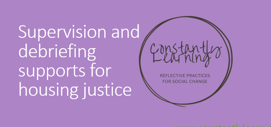 Housing justice work is challenging. People in need of housing justice supports are vulnerable and experience multiple marginalisations. People working in housing justice are at risk of burnout, vicarious trauma, and post-traumatic stress. Many people working in housing justice also have lived experiences of the challenges they are trying to solve. High quality supervision and opportunities for reflection and debriefing are critical.